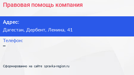 Правовая помощь, компания по адресу Дагестан, Дербент, Ленина, 41 в дальнейшем Организация, размещена в следующих категориях: