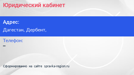 Юридический кабинет по адресу Дагестан, Дербент, в дальнейшем Организация, размещена в следующих категориях: