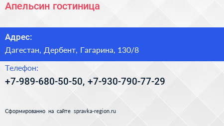 Апельсин, гостиница по адресу Дагестан, Дербент, Гагарина, 130/8 в дальнейшем Организация, размещена в следующих категориях: