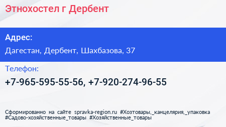 Этнохостел, г. Дербент по адресу Дагестан, Дербент, Шахбазова, 37 в дальнейшем Организация, размещена в следующих категориях: