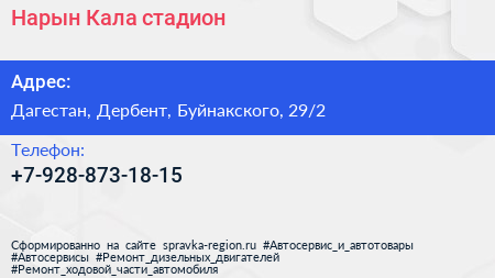 Нарын-Кала, стадион по адресу Дагестан, Дербент, Буйнакского, 29/2 в дальнейшем Организация, размещена в следующих категориях: