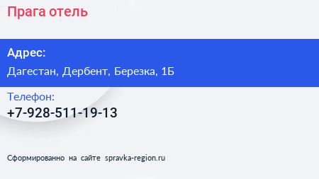 Прага, отель по адресу Дагестан, Дербент, Березка, 1Б в дальнейшем Организация, размещена в следующих категориях: