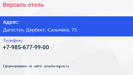 Версаль, отель по адресу Дагестан, Дербент, Сальмана, 71 в дальнейшем Организация, размещена в следующих категориях: