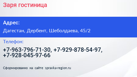 Заря, гостиница по адресу Дагестан, Дербент, Шеболдаева, 45/2 в дальнейшем Организация, размещена в следующих категориях: