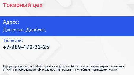 Токарный цех по адресу Дагестан, Дербент, в дальнейшем Организация, размещена в следующих категориях: