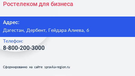 Ростелеком для бизнеса по адресу Дагестан, Дербент, Гейдара Алиева, 6 в дальнейшем Организация, размещена в следующих категориях: