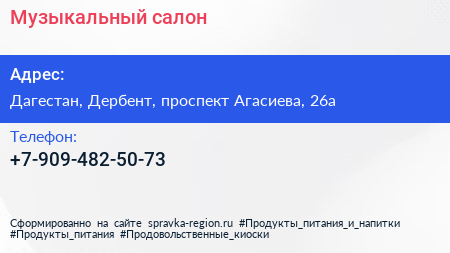 Музыкальный салон по адресу Дагестан, Дербент, проспект Агасиева, 26а в дальнейшем Организация, размещена в следующих категориях: