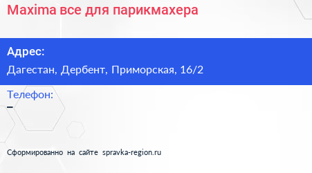 Maxima, все для парикмахера по адресу Дагестан, Дербент, Приморская, 16/2 в дальнейшем Организация, размещена в следующих категориях: