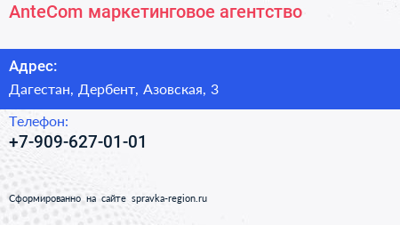 AnteCom, маркетинговое агентство по адресу Дагестан, Дербент, Азовская, 3 в дальнейшем Организация, размещена в следующих категориях: