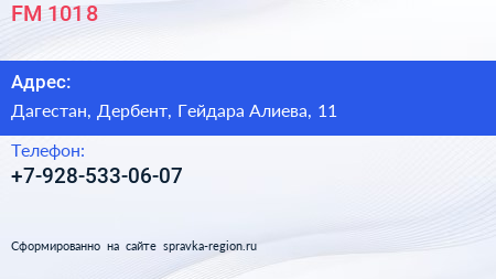 FM 101.8 по адресу Дагестан, Дербент, Гейдара Алиева, 11 в дальнейшем Организация, размещена в следующих категориях: