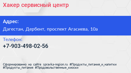 Хакер, сервисный центр по адресу Дагестан, Дербент, проспект Агасиева, 10а в дальнейшем Организация, размещена в следующих категориях: