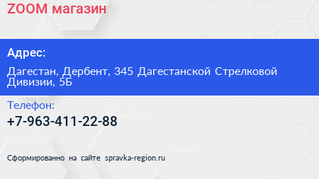 ZOOM, магазин по адресу Дагестан, Дербент, 345 Дагестанской Стрелковой Дивизии, 5Б в дальнейшем Организация, размещена в следующих категориях: