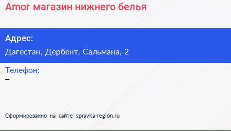 Amor, магазин нижнего белья по адресу Дагестан, Дербент, Сальмана, 2 в дальнейшем Организация, размещена в следующих категориях: