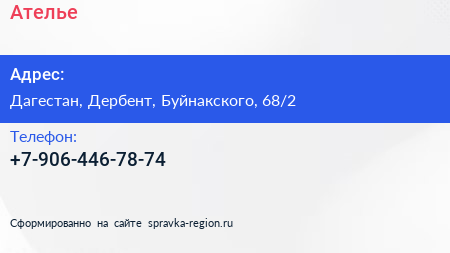 Ателье по адресу Дагестан, Дербент, Буйнакского, 68/2 в дальнейшем Организация, размещена в следующих категориях: