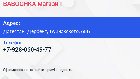 BABOCHKA, магазин по адресу Дагестан, Дербент, Буйнакского, 68Б в дальнейшем Организация, размещена в следующих категориях: