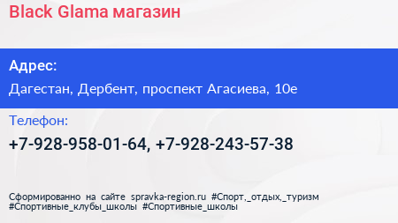 Black Glama, магазин по адресу Дагестан, Дербент, проспект Агасиева, 10е в дальнейшем Организация, размещена в следующих категориях: