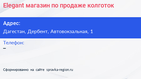 Elegant, магазин по продаже колготок по адресу Дагестан, Дербент, Автовокзальная, 1 в дальнейшем Организация, размещена в следующих категориях: