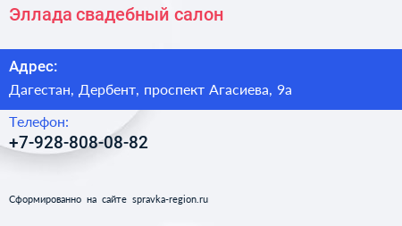 Эллада, свадебный салон по адресу Дагестан, Дербент, проспект Агасиева, 9а в дальнейшем Организация, размещена в следующих категориях: