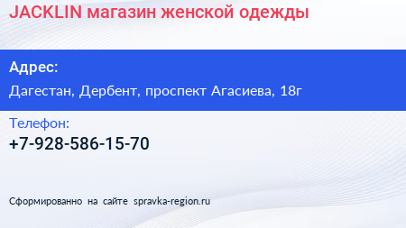 JACKLIN, магазин женской одежды по адресу Дагестан, Дербент, проспект Агасиева, 18г в дальнейшем Организация, размещена в следующих категориях: