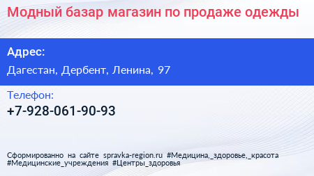 Модный базар, магазин по продаже одежды по адресу Дагестан, Дербент, Ленина, 97 в дальнейшем Организация, размещена в следующих категориях: