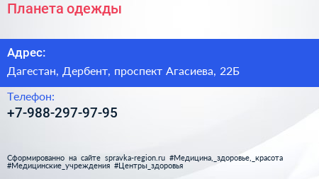 Планета одежды по адресу Дагестан, Дербент, проспект Агасиева, 22Б в дальнейшем Организация, размещена в следующих категориях: