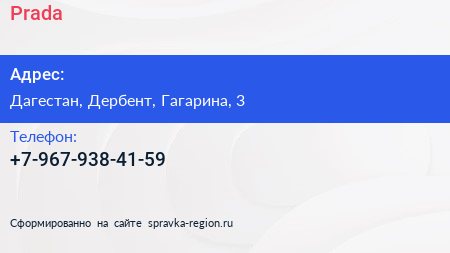 Prada по адресу Дагестан, Дербент, Гагарина, 3 в дальнейшем Организация, размещена в следующих категориях: