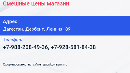 Смешные цены, магазин по адресу Дагестан, Дербент, Ленина, 89 в дальнейшем Организация, размещена в следующих категориях: