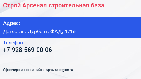 Строй-Арсенал, строительная база по адресу Дагестан, Дербент, ФАД, 1/16 в дальнейшем Организация, размещена в следующих категориях: