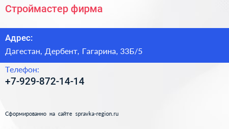 Строймастер, фирма по адресу Дагестан, Дербент, Гагарина, 33Б/5 в дальнейшем Организация, размещена в следующих категориях: