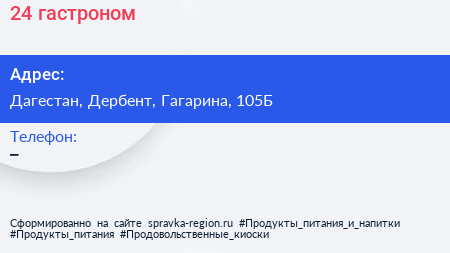 24, гастроном по адресу Дагестан, Дербент, Гагарина, 105Б в дальнейшем Организация, размещена в следующих категориях: