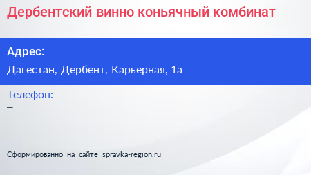 Дербентский винно-коньячный комбинат по адресу Дагестан, Дербент, Карьерная, 1а в дальнейшем Организация, размещена в следующих категориях: