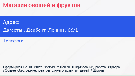 Магазин овощей и фруктов по адресу Дагестан, Дербент, Ленина, 66/1 в дальнейшем Организация, размещена в следующих категориях: