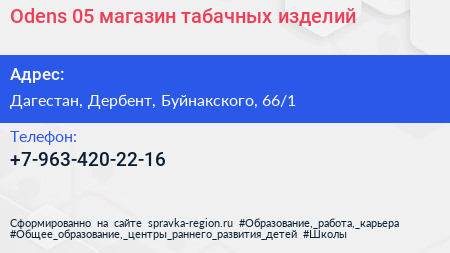 Odens 05, магазин табачных изделий по адресу Дагестан, Дербент, Буйнакского, 66/1 в дальнейшем Организация, размещена в следующих категориях: