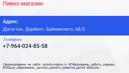 Пивко, магазин по адресу Дагестан, Дербент, Буйнакского, 68/2 в дальнейшем Организация, размещена в следующих категориях: