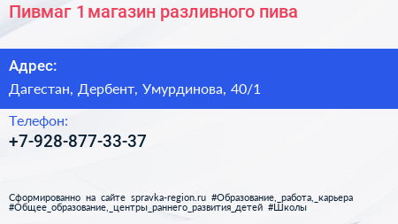 Пивмаг №1, магазин разливного пива по адресу Дагестан, Дербент, Умурдинова, 40/1 в дальнейшем Организация, размещена в следующих категориях:
