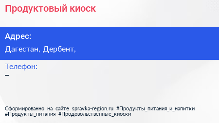 Продуктовый киоск по адресу Дагестан, Дербент, в дальнейшем Организация, размещена в следующих категориях: