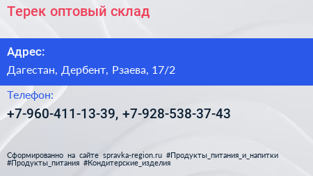 Терек, оптовый склад по адресу Дагестан, Дербент, Рзаева, 17/2 в дальнейшем Организация, размещена в следующих категориях:
