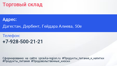 Торговый склад по адресу Дагестан, Дербент, Гейдара Алиева, 50е в дальнейшем Организация, размещена в следующих категориях: