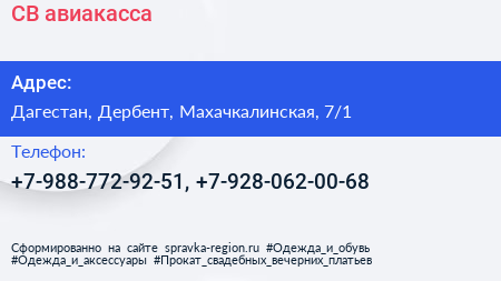 CB, авиакасса по адресу Дагестан, Дербент, Махачкалинская, 7/1 в дальнейшем Организация, размещена в следующих категориях: