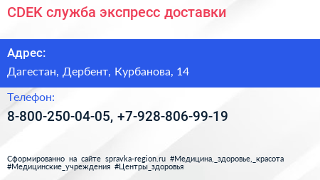 CDEK, служба экспресс-доставки по адресу Дагестан, Дербент, Курбанова, 14 в дальнейшем Организация, размещена в следующих категориях: