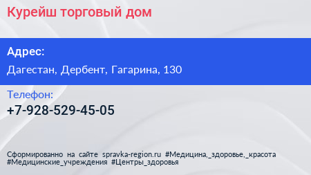 Курейш, торговый дом по адресу Дагестан, Дербент, Гагарина, 130 в дальнейшем Организация, размещена в следующих категориях: