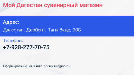 Мой Дагестан, сувенирный магазин по адресу Дагестан, Дербент, Таги-Заде, 30Б в дальнейшем Организация, размещена в следующих категориях: