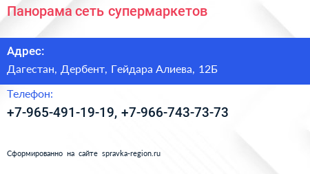 Панорама, сеть супермаркетов по адресу Дагестан, Дербент, Гейдара Алиева, 12Б в дальнейшем Организация, размещена в следующих категориях: