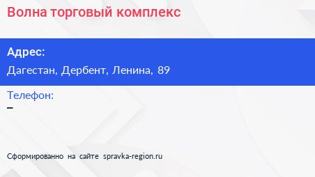 Волна, торговый комплекс по адресу Дагестан, Дербент, Ленина, 89 в дальнейшем Организация, размещена в следующих категориях: