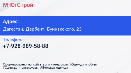 М-ЮгСтрой по адресу Дагестан, Дербент, Буйнакского, 23 в дальнейшем Организация, размещена в следующих категориях:
