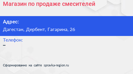Магазин по продаже смесителей по адресу Дагестан, Дербент, Гагарина, 26 в дальнейшем Организация, размещена в следующих категориях: