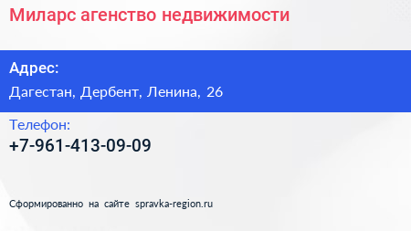 Миларс, агенство недвижимости по адресу Дагестан, Дербент, Ленина, 26 в дальнейшем Организация, размещена в следующих категориях: