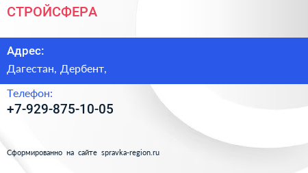 СТРОЙСФЕРА по адресу Дагестан, Дербент, в дальнейшем Организация, размещена в следующих категориях: