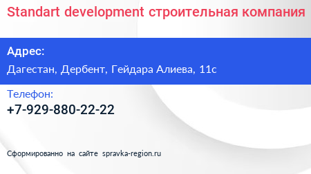 Standart development, строительная компания по адресу Дагестан, Дербент, Гейдара Алиева, 11с в дальнейшем Организация, размещена в следующих категориях: