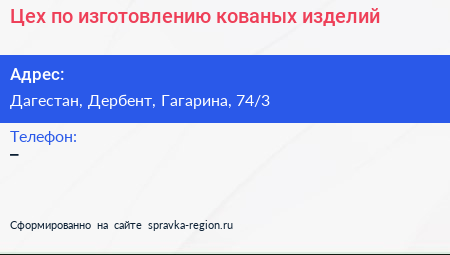 Цех по изготовлению кованых изделий по адресу Дагестан, Дербент, Гагарина, 74/3 в дальнейшем Организация, размещена в следующих категориях: